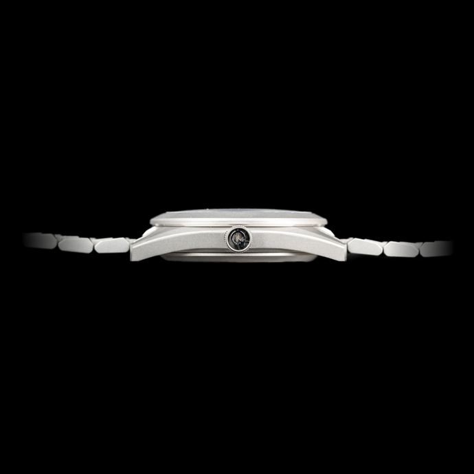 The case and bracelet of Field One are crafted from Grade 2 Titanium, enhanced with a clear matte DLC coating that boosts its hardness to an impressive 1200 HV -- equivalent to tungsten carbide and six times harder than stainless steel!